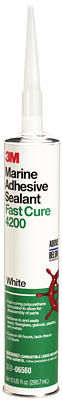 A one-part general purpose polyurethane that chemically reacts with moisture to deliver flexible bonds with good adhesion to wood, fiberglass, gelcoat, certain plastics and metals. Forms watertight, weather-resistant seals on joints and boat hardware above or below the waterline. Paintable and sandable. This product is approx. half the strength of 3M™ Marine Adhesive/Sealant 5200, which allows for disassembly of parts.