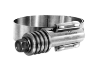 Constant Torque Clamps: All Stainless Steel 5/8" (16mm) wide band, liner, housing, screw and Bellville Springs. 7/8" (22mm) OD Range. Automatically expands and contracts to compensate for heat & cold.Virtually all rubber hose compresses (cold flow) after installation of clamping device, resulting in an